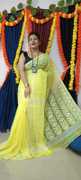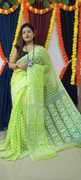 Abharani Saree Kuthir Woven Jamdani Cotton Blend Saree (Orange)