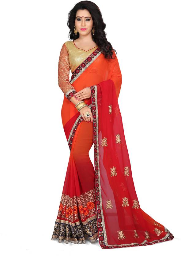 Embroidered Bollywood Georgette Saree (Orange)