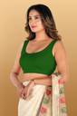 Without any hooks or closures, this blouse lets you conveniently wear it like a t-shirt or sports bra and offers a precise fit. So, you can flaunt a shapely silhouette with different sarees.