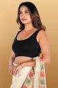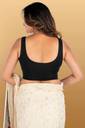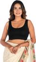 Without any hooks or closures, this blouse lets you conveniently wear it like a t-shirt or sports bra and offers a precise fit. So, you can flaunt a shapely silhouette with different sarees.