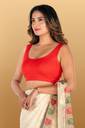 As the Abhi Solid Pattern Sleeveless Blouse has a U-neck and does not have sleeves, it lets you freely move your arms and keeps you relaxed and cool. So, you can dance at weddings and other functions without any hassles.