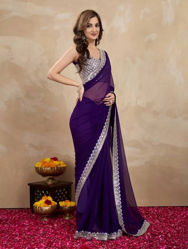 HIJA TRENDZ Embroidered Bollywood Georgette Saree (Purple)