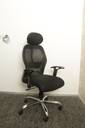 Ergonomic chair with Automatic Tension Adjustment Control which adapts according to the user’s weight. Adjustable Headrest, Seat Height and Armrests & Cushioned Lumber Support, seat upholstered with premium fabric range