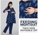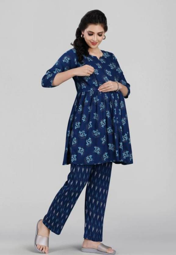 ABKT Women Printed Dark Blue Top & Pyjama Set