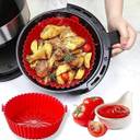 | Key Features | - Preferred Air Fryer Silicone Pots - Purchasing a silicone air fryer pot will be a great eco-friendly, money-saving, and safe alternative to single-use parchment paper, and it will keep your food fresh., Heat Resistant and Food Grade Safe - Made of high-quality, BPA-free, food-grade silicone that withstands air frying, steaming, and oven baking up to 464°F/240°C without sticky and burnt residue, It will not be deformed or damaged after hundreds of uses and can be used with peace of mind., Innovative Practical Design - Many raised corrugated lines at the bottom ensure air circulation and even heat distribution, keeping all your baked goods intact, beautiful and delicious., EASY TO CLEAN Dishwasher-ready, a great gift - non-stick is the best feature of this air fryer liner, it's dishwasher-safe and makes your cleaning super easy. Suitable for air fryer, steamer, oven, instant pot and microwave etc. The perfect gift for family, friends and cooking lovers., Package Includes- Pack of 1, Colour:Red, Size: 8.5*8.5*2 IN.