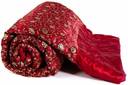 Set of 1 Maroon Color Single Bed Traditional Jaipuri Silk Razai/Rajai/Quilt with Golden Floral Print