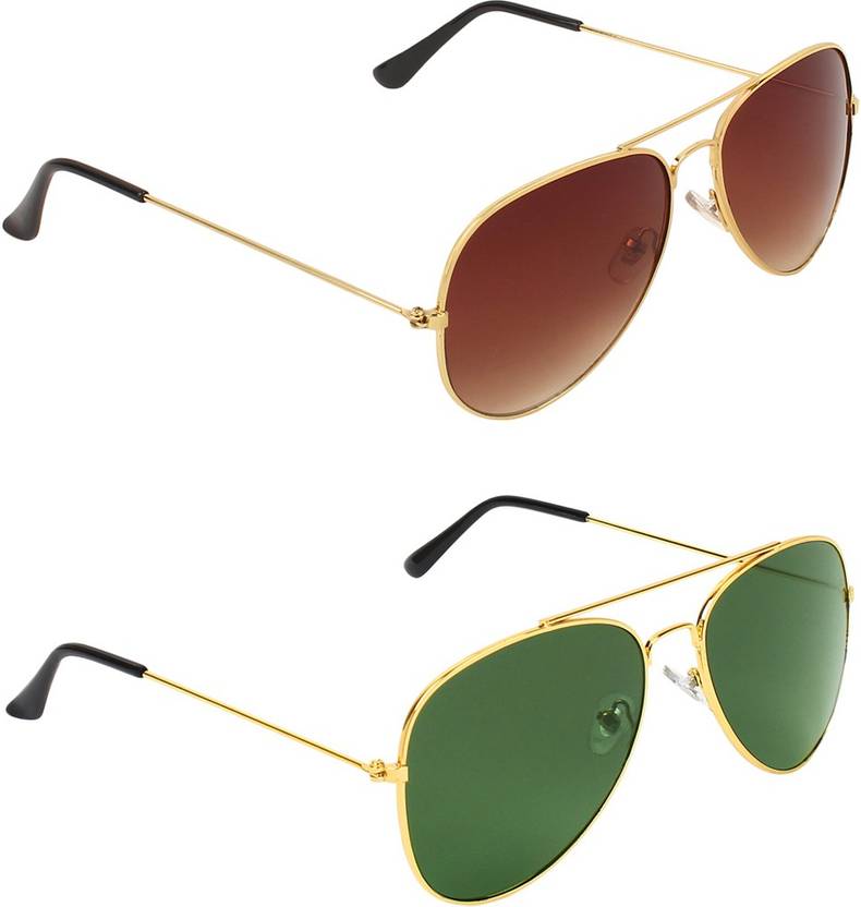 UV Protection Aviator, Aviator Sunglasses (For Men & Women, Brown, Green)