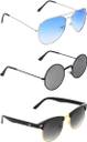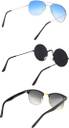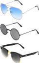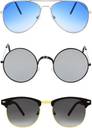 This is Combo pack of 3 Sunglasses. 1 Aviator Sunglass , 1 Round Sunglass & 1 ClubMaster Sunglass.