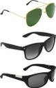 This is Combo pack of 3 Sunglasses.It have 1 Aviator Sunglass , 1 WayFarer Sunglass & 1 Wrap-Around Sunglass.
