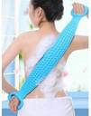 bath belt can be used to clean your back as well, using the loops given at both the ends which can be entangled on your fingers to facilitate scrubbing your back. It Can also be used to hang on hooks, after and before use. Its belt shape gently exfoliates the skin and effectively removes dead skin cells and dirt. This bath belt can be stretched conveniently while using. Gentle massaging with it over the skin stimulates blood circulation. The string attached to the loofah provides you a comfortable grip while bathing.