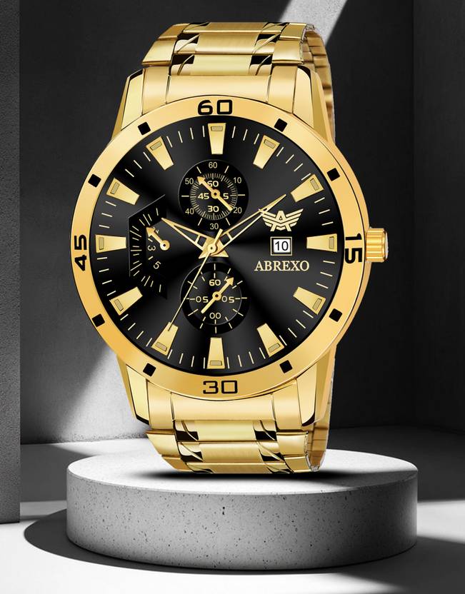 New Latest Date Working Round Black Dial Gold Quartz Watch For Boys