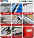 Stops leaks instantly Waterproofing Tape. This tape features a new generation butyl adhesive that provides an instant water and air tight seal. Use it to patch holes, cracks, gaps and tears, even underwater. Perfect for sealing for RV, window, downspouts, boat sealing, glass, gutters, cement wall cracks, steel tile, wagon box, sunroom seams, canopy, aluminum, tarps, and EPDM rubber roof patching and more.