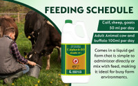 Designed with clear feeding guidelines, this supplement suits various animals. Adult cows and buffaloes can be given up to 100 ml per day, while calves, sheep, and goats require up to 50 ml daily. The dosage can be mixed easily with feed, offering a practical solution for daily intake. Besides, this method helps maintain consistency without disrupting regular feeding schedules.