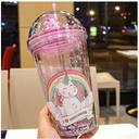 Absolute Evolution Unicorn Transparent Sipper/Water Bottle/Mason Jar/Tumbler with Straw for Kids Plastic Tumbler (380 ml)