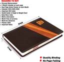 Size 10 x 7.5 IN. Super Print Natural shade paper (80 GSM)., Imported PU Leather Cover with Month cut and Action Plan., Strong stitching, hard binding and emboss U.V. coated design., Reference calendar January 2025 to December 2025.