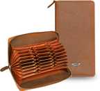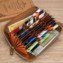 ABYS Genuine Leather 27 Slots Unisex Long Card Holder RFID Protected Card Wallet 24 Card Holder (Set of 1, Khaki)