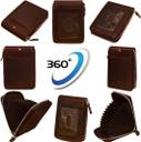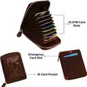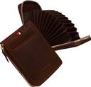 ABYS Genuine Leather RFID Card Holder with Metallic Zip Closure 10 Card Holder (Set of 1, Brown, Brown)