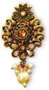 Elegant Gold-Tone Brooch with Studded White Stone and Pearl Latkan for Women