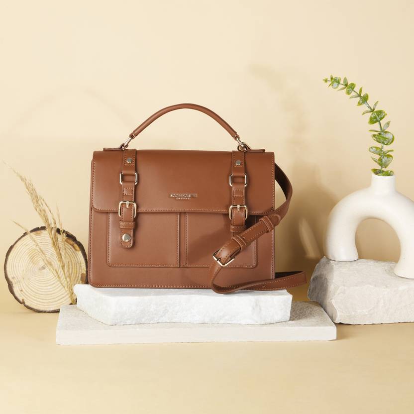 2. These Synthetic leather satchel bag with Front pocket ,with Gold buckles for old school look