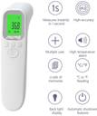 | Features | - Instant Measurement in 1 Second – Get quick and accurate temperature readings., High Accuracy ±0.2°C – Reliable results for both adults and children., Non-Contact Infrared Technology – Hygienic and safe measurement without skin contact., Dual Mode (°C / °F Switchable) – Easily switch between Celsius and Fahrenheit., 32 Memory Storage – Saves up to 32 readings for health tracking., High Temperature Fever Alarm – Alerts when temperature is above normal., Bright Backlight LCD Display – Easy to read even in dark environments., Multi-Purpose Use – Suitable for forehead, objects, and room temperature measurement., One-Button Operation – Simple and user-friendly design., Auto Power Off – Saves battery when not in use.