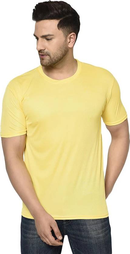 ACENTEO Solid Men Round Neck Yellow T-Shirt