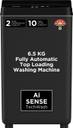 Acer 6.5 kg Halo Wash Series with Glass Lid, 5 Star Rating, AiSense, AutoBalance, Hex-Fin Jet Pulsator, SwirlWash Tub Fully Automatic Top Load Washing Machine Black, Grey (AR65FATLP0GT)