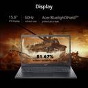 The FHD IPS display of this laptop has a 81.67% screen-to-body ratio to ensure an immersive viewing experience. The Acer ComfyViewTM LED backlit TFT LCD IPS technology, Acer BlueLightShield, and Acer ExaColour technology enhances your viewing comfort.