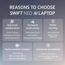Step into a smarter digital life with the Acer Swift Neo OLED. This laptop redefines interaction with your PC—helping you connect, discover, and create with greater ease and confidence. It’s not just a laptop, it’s your personal AI-powered space.