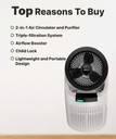 This air purifier comes with a circulation fan that circulates the clean air throughout your home, so you and your family can breathe clean and purified air at all times.