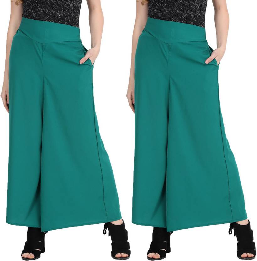 Achchhe Cheej Pack of 2 Women Flared Green Crepe Trousers