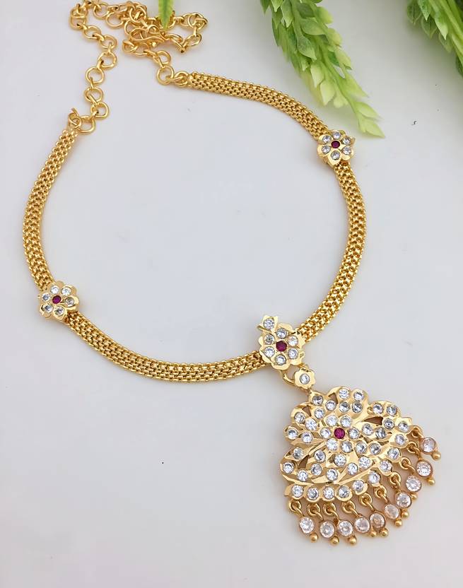 Impon Attigai Cubic Zirconia Gold-plated Plated Brass Necklace
