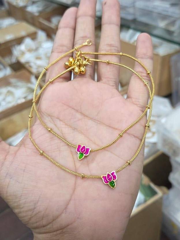 ACHU JEWELS Simple Anklet Brass Anklet (Pack of 2)