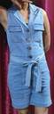 Step into easy elegance with this light-wash denim jumpsuit, designed for comfort and confidence. Featuring a sleeveless cut, structured collar, and button-down front, this piece combines casual charm with polished style. The self-tie belt cinches the waist for a flattering fit, while the chest flap pockets and shorts-length hem add practicality and flair. Pair it with ankle boots for an edgy look or sandals for laid-back vibes.