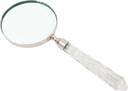 Discover the perfect blend of style and practicality with the AcmeHomeDecor Magnifying Glass, meticulously crafted to enhance both functionality and aesthetic appeal. This elegant piece features a sturdy brass frame with a luxurious silver metal finish, ensuring durability and timeless charm. The 4-inch premium glass lens provides crystal-clear magnification for reading, examining details, or serving as a decorative accessory.