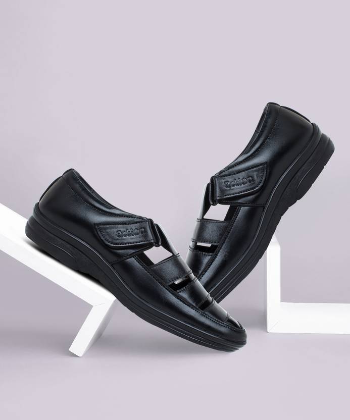 Genuine Leather High Comfort Full Cushioned Insole. Adding perfect charm to your style are these sandals from Action. Highlighted with classic design and stitch detailing, super Cushioned and Comfortable these sandals will impress urban men at a single glance. A must-have in your footwear collection, these sandals are crafted using Genuine Leather that makes them durable