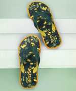 These flip flops for men have been crafted using a strong rubber material. The straps are broad and have a hardy rubber casting. The soles of the slippers have been made with a thick dual-layer rubber base. The upper base of the sole upon which the feet rest is soft and inviting, whilst the bottom base is tough. There is an attractive print all over the slippers that adds a charming look to them.