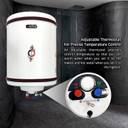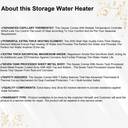 The heater features a vertical mount type suitable for indoor use. Indicators provide real-time data for ease of operation. Automatic shut-off functions add another layer of convenience by ensuring the unit turns off when not needed. It provides ample hot water for multiple uses simultaneously, such as bathing, dishwashing, and laundry. The geyser is equipped with a powerful 2000-watt heating element that ensures rapid heating of water, delivering hot water efficiently and quickly. This high-performance element ensures that the water heats up quickly and maintains a consistent temperature, providing reliable hot water whenever needed.