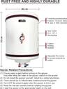 This water heater includes a stainless steel inner tank, ensuring robustness and longevity. Additionally, a magnesium anode is incorporated, offering extended life in hard water. The extra-thick capsule-type tank design adds another layer of durability to the unit. The geyser features a sleek and modern design that seamlessly integrates into any bathroom or kitchen decor. The exterior is crafted from high-quality, corrosion-resistant materials, ensuring durability and a long-lasting, pristine appearance. The inner tank is made from high-grade stainless steel, which offers excellent resistance to corrosion and scaling, significantly extending the lifespan of the appliance.