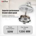 With an overall power consumption of just up to 50 W, the Activa Super Ceiling Fan delivers energy-efficient performance.