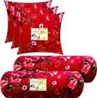 ACTOS Microfibre Bolster Pack of 5 Geometric 3 Cushion And 2 (Maroon, Black8)