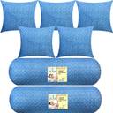 ACTOS Microfibre Bolster Pack of 7 Floral 5 Cuhion 2 (Light Blue)