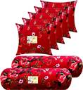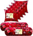 ACTOS Microfibre Bolster Pack of 7 Floral Combo Set Of 5 Cushion And 2 (Maroon, Multi8)