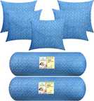 ACTOS Microfibre Bolster Pack of 7 Floral 5 Cuhion 2 (Light Blue)