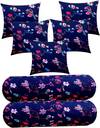 ACTOS Microfibre Bolster Pack of 7 Floral (Blue, Multicolor)