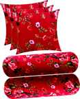 ACTOS Microfibre Cushion Pack of 5 Floral (Maroon, Multicolor)