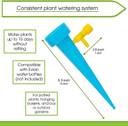 Adjustable valve: The flow rate can be controlled. The plant watering Device with control valve can control the dripping speed of 0-60s/drip, and the sustained drip lasts for 1-15 days. Only adjust the valve to Meet your needs without complicated setup steps::Simple and Convenient: Installed without any tools, just drill some holes in the bottom of the bottle or cut the tail of the bottle to keep the air flowing.Loosen the slow release control valve switch on the regulating valve according to the irrigation needs::Multi-Scene Application: Vegetables, potted plants, houseplants, water plants day-to-day, patio plants, herbs, hanging baskets, desk pots, hanging plants, outdoor gardens, small tree, shrubs::Warning::Compatible with all 1.1 inch/2.8cm inner diameter, suitable for most beverage bottles, not suitable for mineral water and purified water bottles. (Measure the inner diameter of the bottle including the thread size before installation)