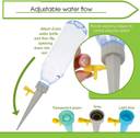 Notes:1. Make sure there is a hole in the bottle or the bottom of the bottle is cut off. Without air pressure, no water flows out of the irrigation::2. Adjust the water flow to the maximum value before each use. Make sure there is no air in the watering spike. Then adjust the water flow slowly::3. After adjusting the flow rate and burying the outlet of the irrigation system into the ground, the flow rate is most stable::4.We suggest to use the 500ml bottle.Bottles larger than 600ML should not be inserted on the edge of the flowerpot to avoid collapsing.If necessary, please try toinsert in the middle of the flower pot.