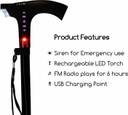 MCP healthcare ACU-CHECK SMART WALKING STICK Lightweight makes it virtually effortless for your elderly loved ones to carry along; rendering them reliable and strong support wherever they go Features: LED torch, Emergency FlashLight, and Alarm Buzzer provide the elderly with means to obtain attention and help, in case of emergency and FM Radio: Comes with a radio function to give companionship to your loved ones and keep them connected to the latest happenings around them Needs 3 hours to fully charge - 5V USB or AC Powered. Plays 6 hours of Radio when fully charged. Built-in rechargeable Lithium Battery Warranty: 3 months from the date of purchase. Package Inclusions: Walking stick, user manual, charging cable.