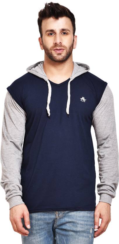 AD & AV Colorblock Men Hooded Neck Blue, Grey T-Shirt
