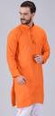 AD & AV Men Solid Cotton Linen Straight Kurta (Orange)